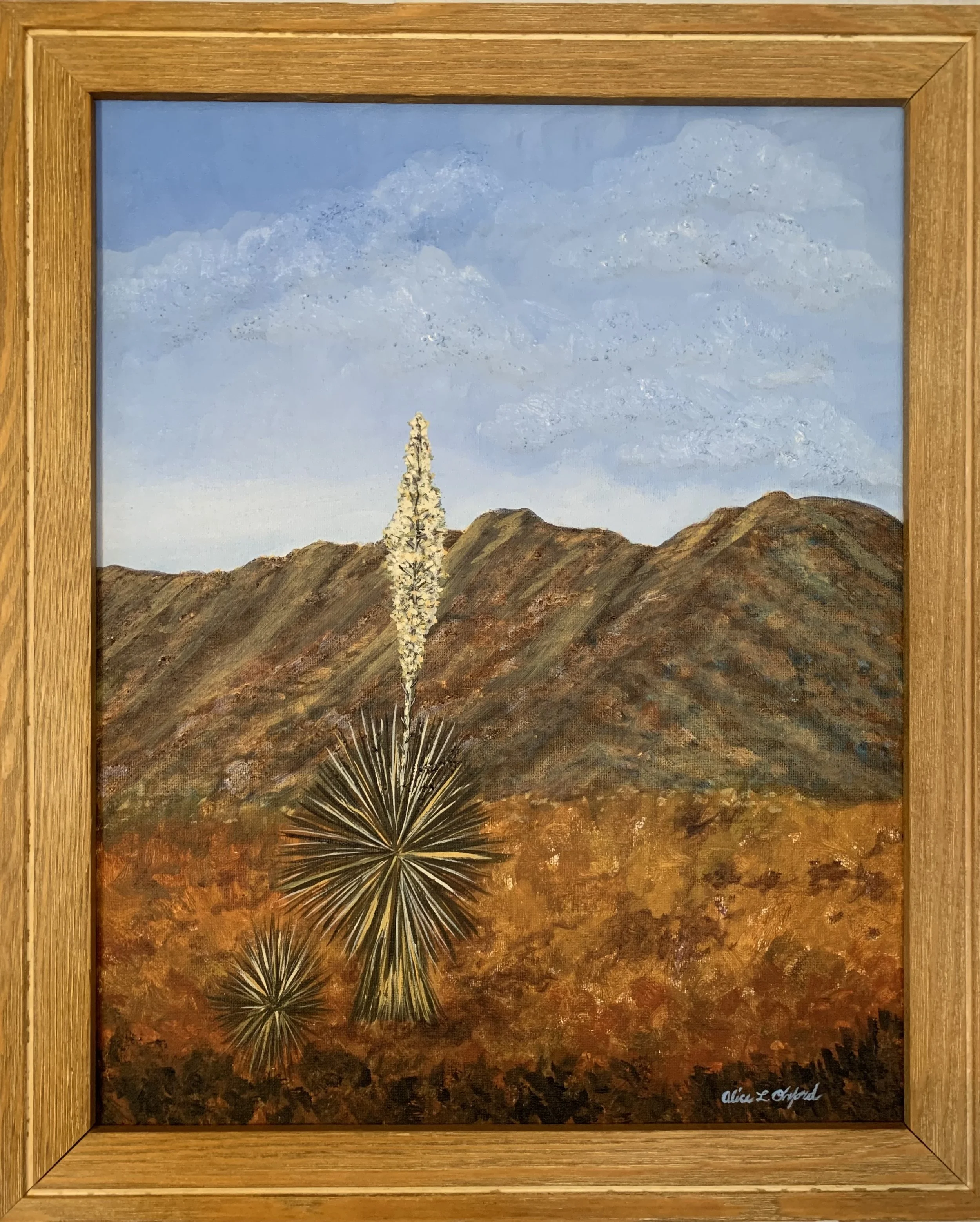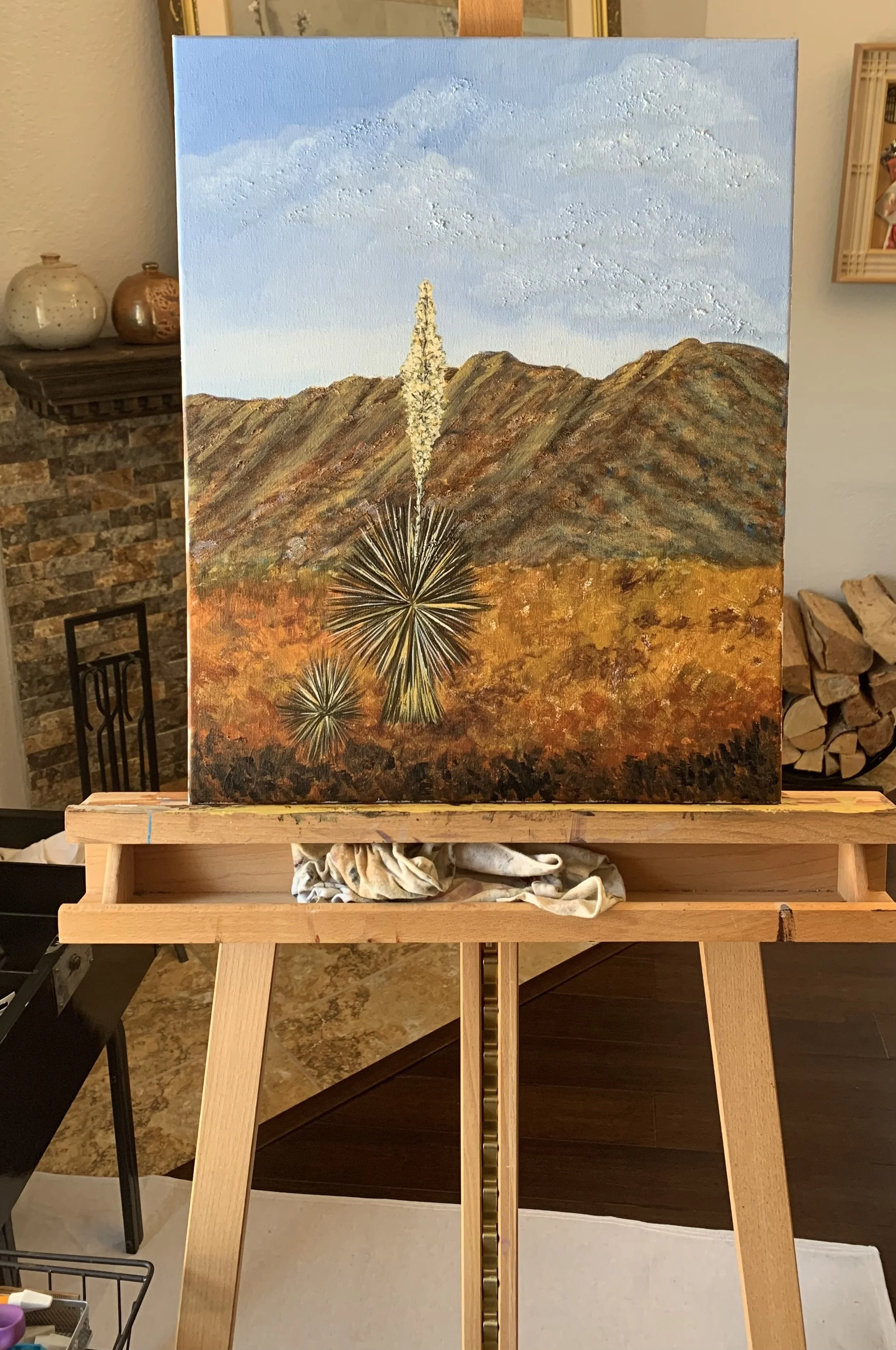 The diversity of flora in the beautiful state of New Mexico is enough inspiration for me to try and capture some of its beauty on canvas. The yucca plant blooms annually, and the flowers are edible! These plants are drought tolerant and very hardy!