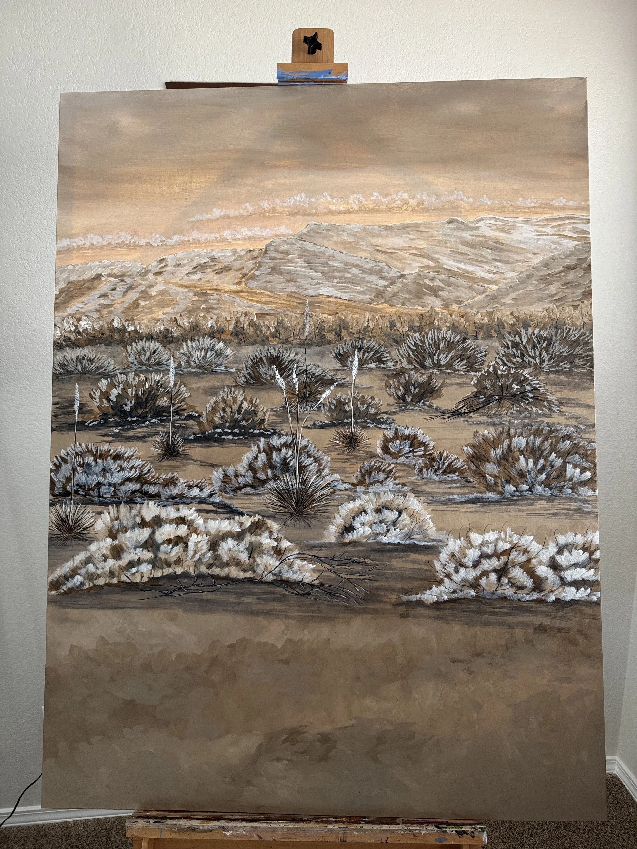 Quiet Desert Sentinels grew out of a desire to try something very different in my process. I challenged myself to create this painting using only five colors, intentionally limiting the palette so that value, texture, and composition would take priority. That restraint shaped the entire mood of the piece—quiet, balanced, and intentional—reflecting the simplicity and endurance of the desert itself.