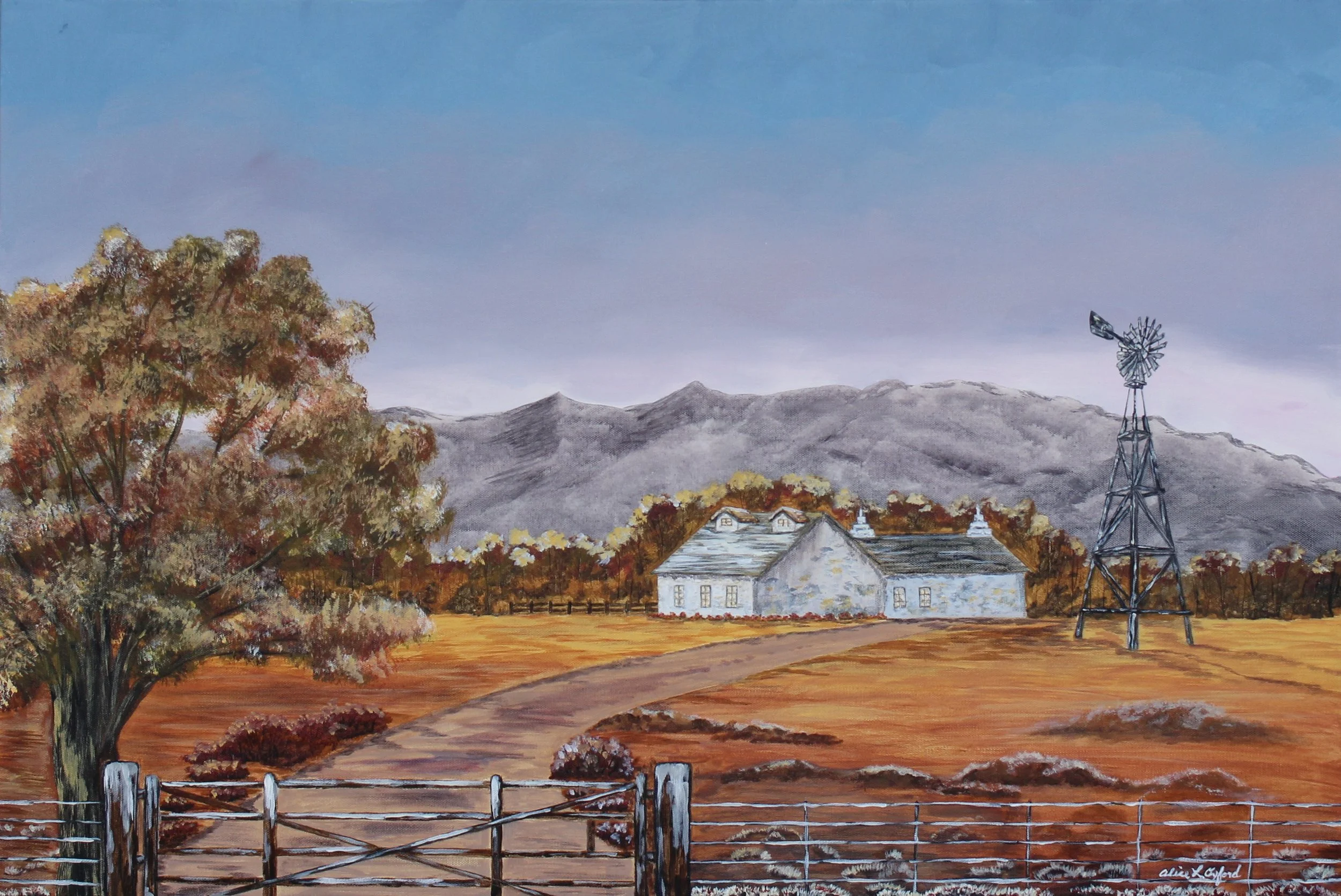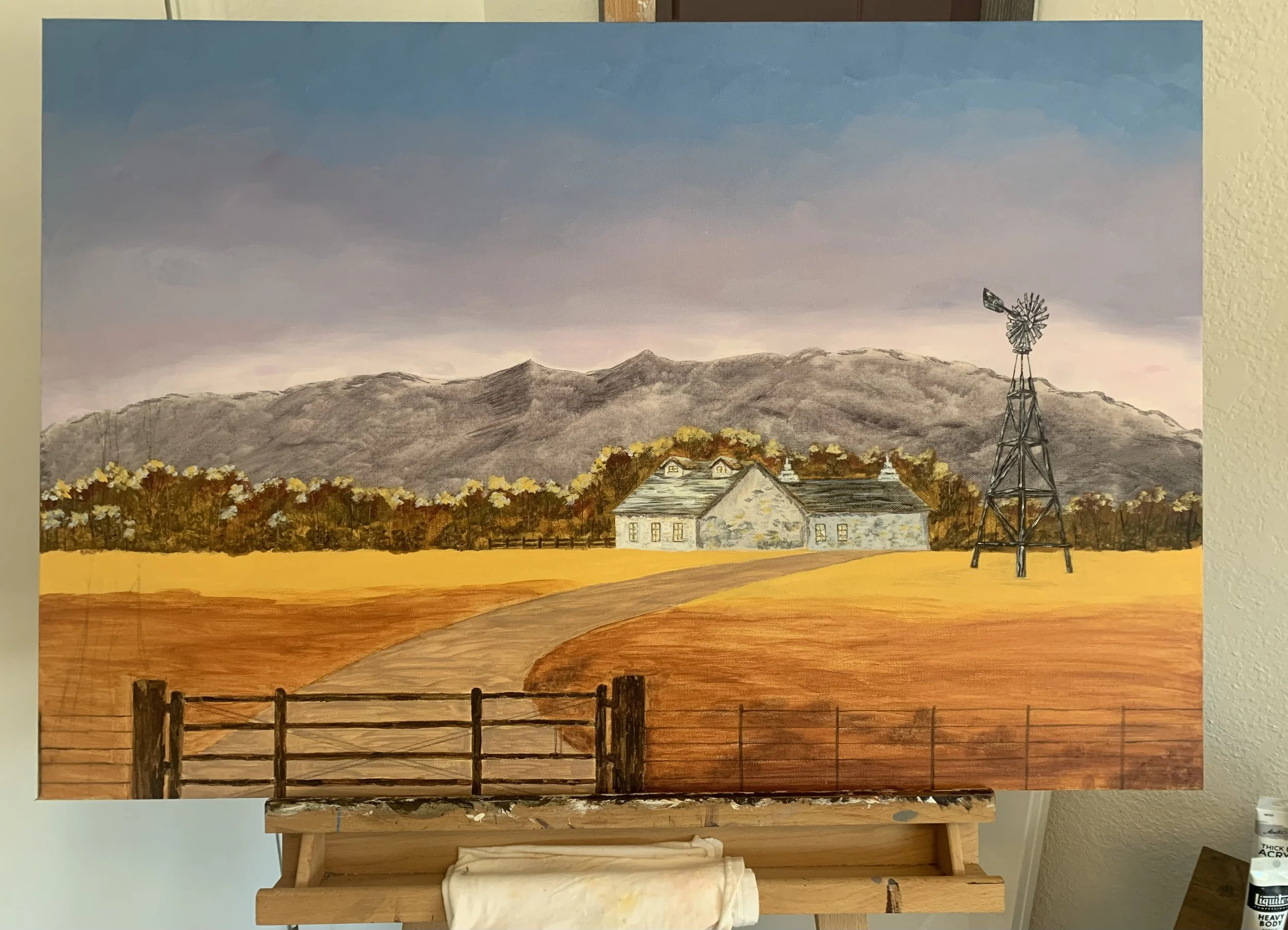 While walking at the Albuquerque Botanic Garden in New Mexico we discovered this heritage farm. There are lots of hidden treasures if you are willing to take the time to look. I had to capture the windmill on canvas as I think it is so beautiful.